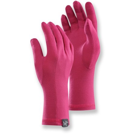 The arc teryx gothic glove is made with soft quick drying merino wool for a boost of warmth in cool to cold weather.